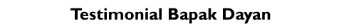 Pak Dayan mulai menderita penyakit diabetes sejak tahun 2009. Saat itu sebenarnya ia sudah diperkenalkan dengan Tahitian Noni. Namun ia tidak segera mencoba obat herbal diabetes tersebut. baru sekitar tahun 2012 ia mulai menjalani terapi diabetes dengan Tahitian Noni secara teratur. Itupun setelah ia berunding cukup lama dengan istrinya. Akhirnya sang istri pun mengijinkannya untuk mencoba khasiat Tahitian Noni.