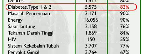 Berdasarkan hasil ujicoba tersebut diketahui bahwa Tahitian Noni berhasil mengatasi 82{f13c62159a259a7daa0d38fce189be1ad98c5142617f96be363baab754464bcb} pasien diabetes. Tentunya angka keberhasilan tersebut merupakan angka yang cukup fantastis bagi kesembuhan suatu penyakit kronis.