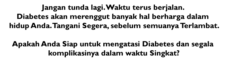 Pertanyaan untuk Anda: Sampai kapan, Anda membiarkan hidup Anda dihancurkan oleh Diabetes?